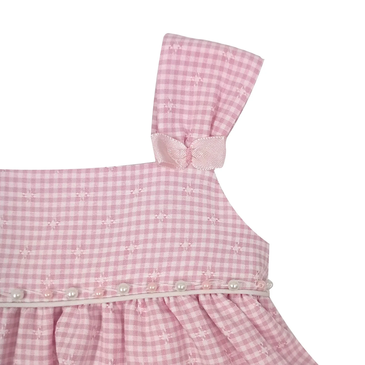Vestido estampado a cuadros con detalles decorativos y elementos de adorno.