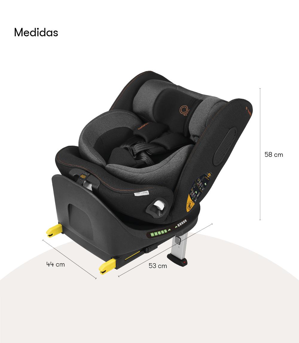 - Máximo confort desde el primer día: su diseño giratorio facilita la colocación del bebé, y su amplia reclinación garantiza viajes cómodos en cada etapa.