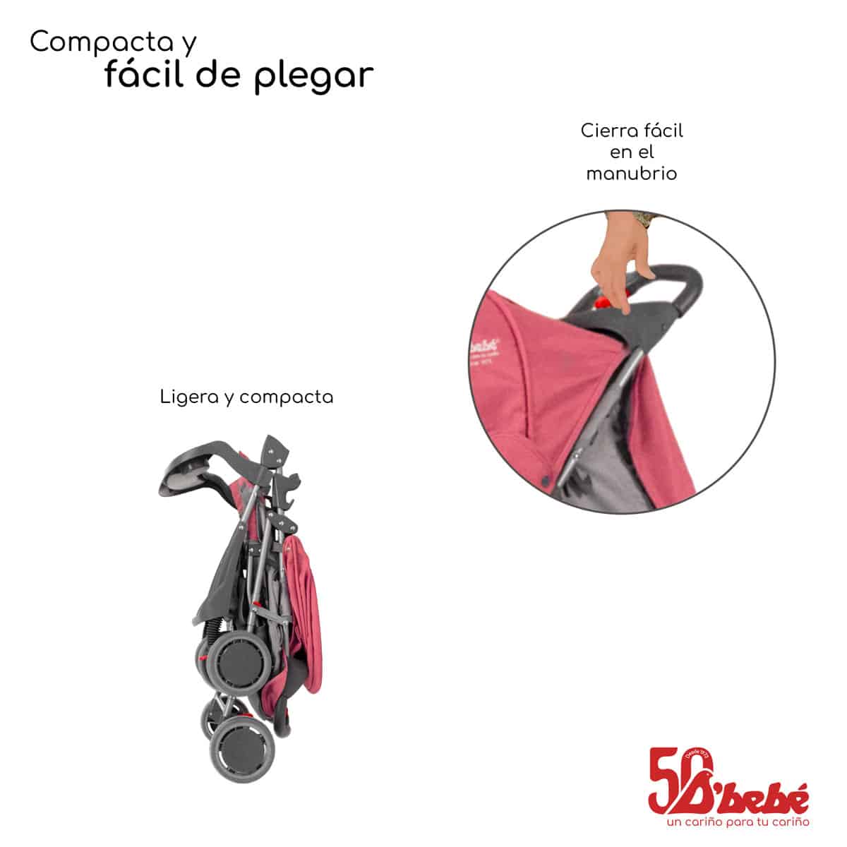 • Cuenta con una “caja de guardado” y portavaso para los papás en el manubrio con capacidad para cargar 1 kilo.