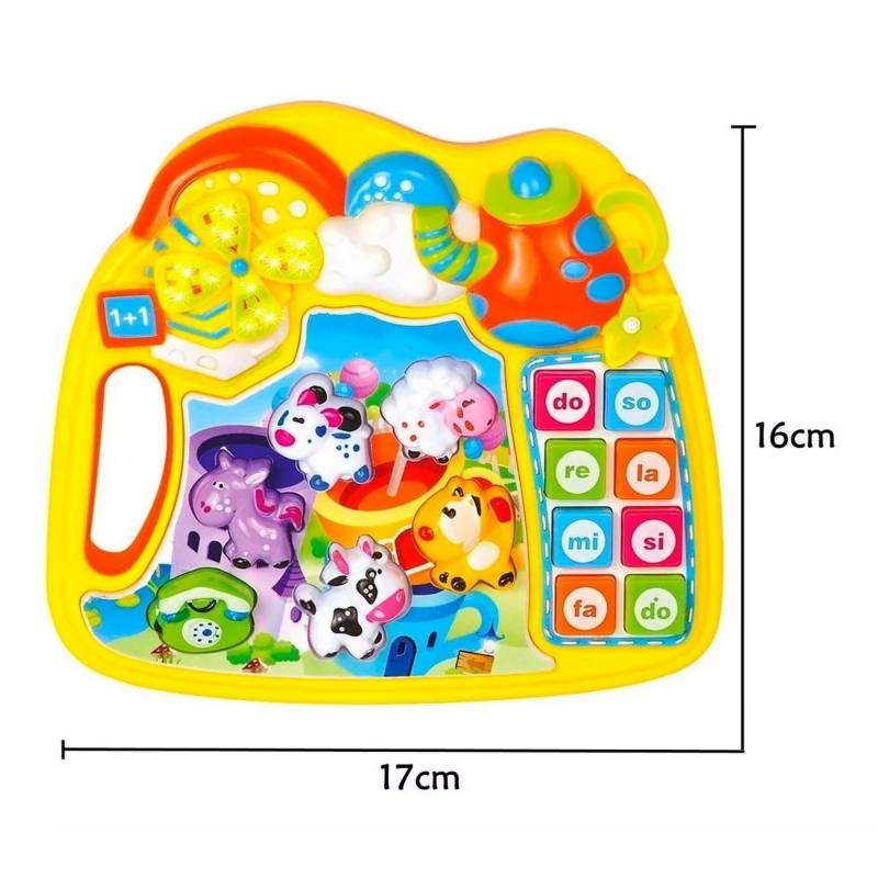 Piano musical de la Gloria, este hermoso piano con su mecanismo de luz y sonido del piano, hará que las habilidades de pensamiento complejo y las funciones motoras se desarrolle como nunca antes. El producto tiene teclas clásicas de 8 notas. Además, hay 5 sonidos de animales (caballo, vaca, pato, perro, oveja, y telefono) en el producto.